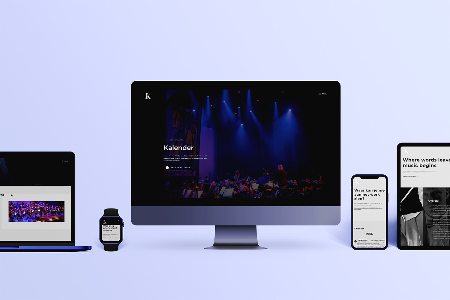 Dirigent Kristof Aerts is een bezige bij. Hij wou dan ook graag dat zijn online aanwezigheid daar een perfecte aanvulling voor zou zijn. Ik maakte voor hem logo en website.